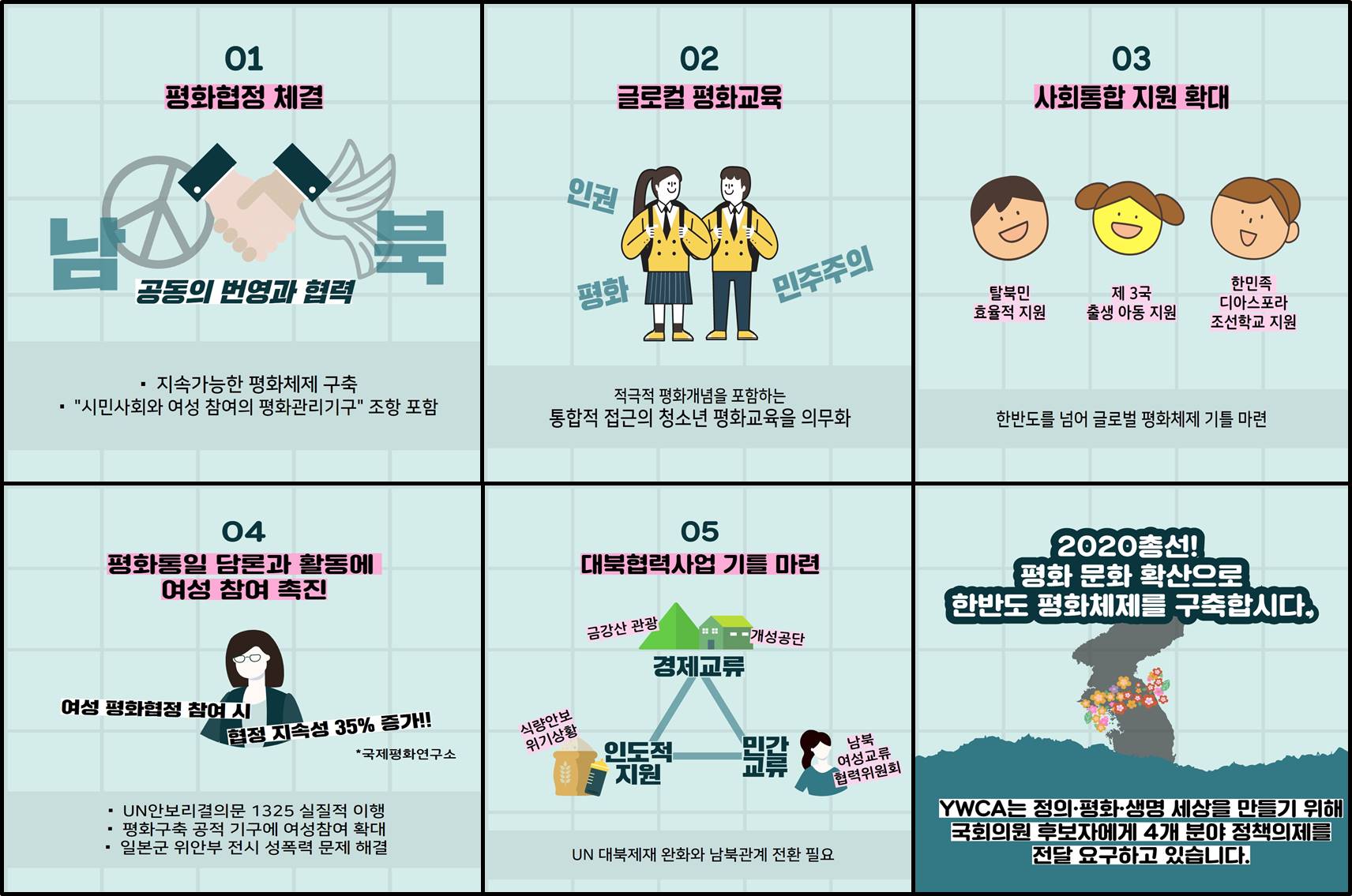 공지사항 <평화통일> 2020 제21대 국회의원 선거(총선) YWCA 정책의제 작성자관리자 등록일20-03-16 15:38 조회수393 2020 제21대 국회의원 선거 YWCA 정책의제 - <평화통일> 알림 본문 목록 다음글 북한이탈주민 정착을 위한 정착도우미 신규 교육생 모집 20.05.11 이전글 <성평등> 2020 제21대 국회의원 선거(총선) YWCA 정책의제 20.03.16 댓글 (0) 댓글목록 등록된 댓글이 없습니다.