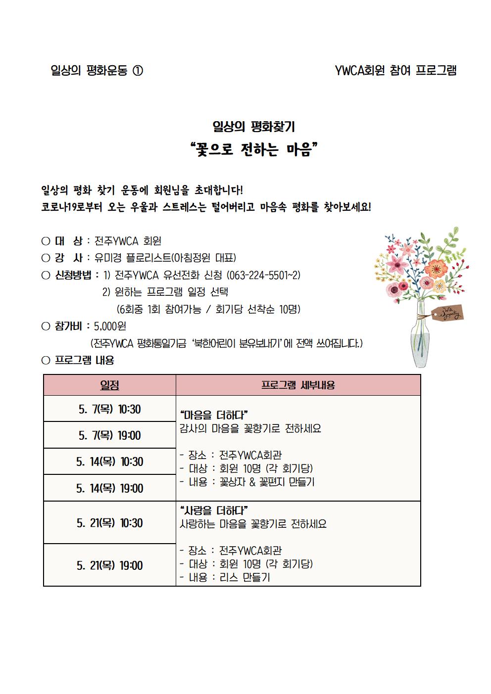 프로그램안내 회원프로그램 '꽃으로 전하는마음' 작성자관리자 등록일20-04-28 18:18 조회수273 많은 신청바랍니다^^ 본문 목록 다음글 여성인권신장을 위한 [여세 서포터즈 2기] 모집 - 대학생, 청년 10명 20.05.04 이전글 행복한 바느질 "생활자수 "회원 모집 19.11.05 댓글 (0) 댓글목록 등록된 댓글이 없습니다.