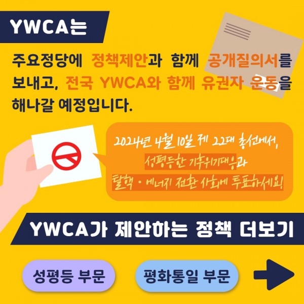 프로그램안내 한국YWCA가 제안하는 탈핵기후생명 정책 작성자관리자 등록일24-03-13 14:43 조회수269 2024년 4월 10일, 22대 총선!우리는 이런 정책에 투표하겠습니다. - 탈핵기후생명 정책 본문 목록 다음글 한국YWCA가 제안하는 성평등 정책 24.03.13 이전글 2024 겨울방학 부모자녀 무료 심리검사축제 신청하세요!!! 23.12.28 댓글 (0) 댓글목록 등록된 댓글이 없습니다.
