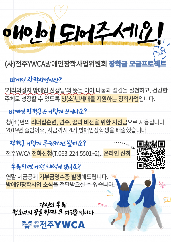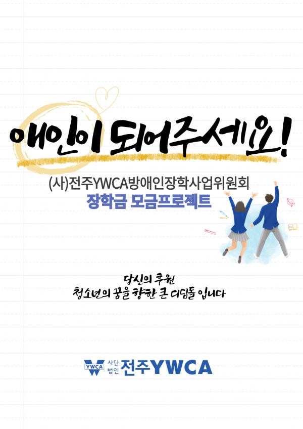 청(소)년 지원을 위한 장학금 모금 프로젝트를 진행합니다.
