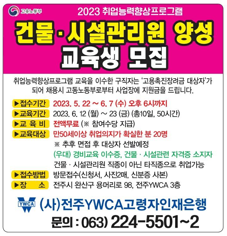 2023 취업능력향상프로그램 <건물시설관리원 양성> 교육생 모집