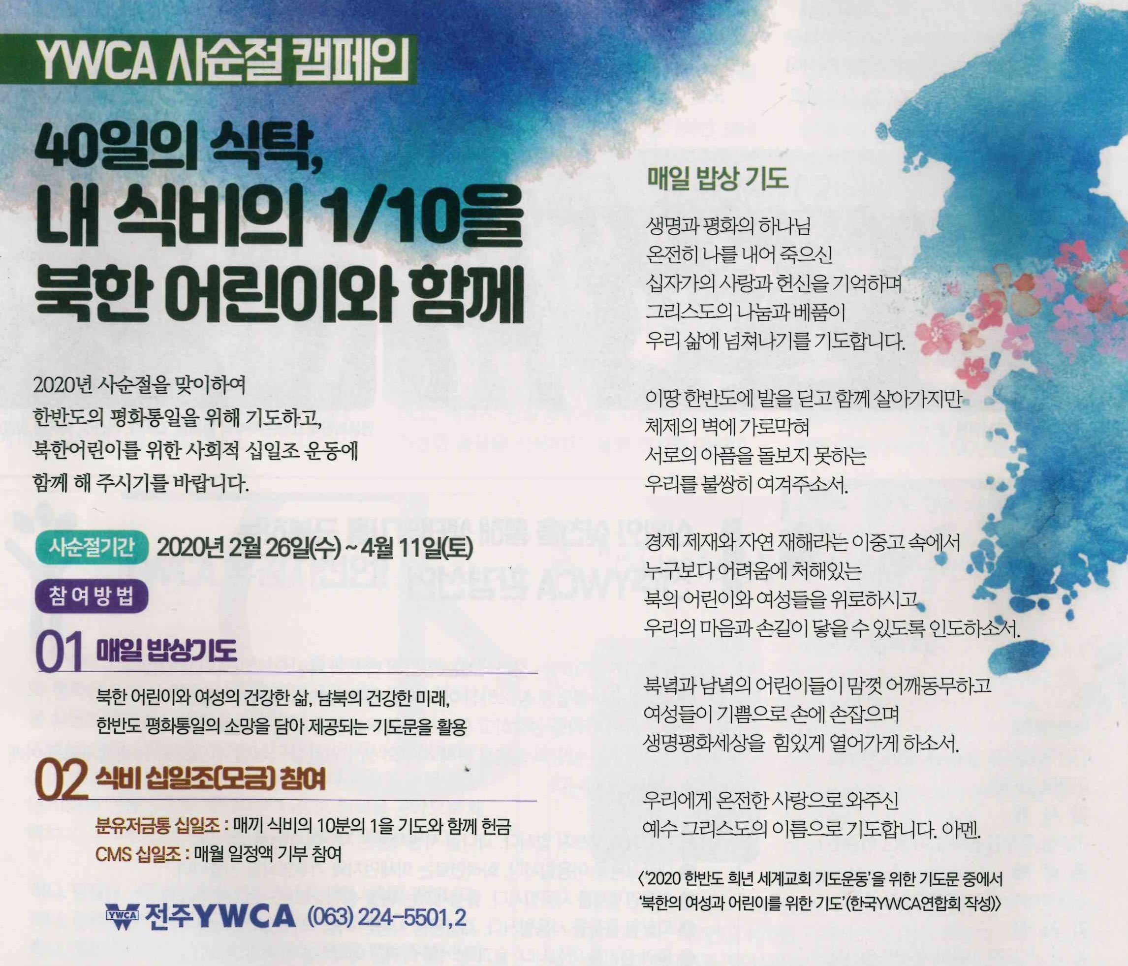 YWCA사순절 캠페인! 40일의 식탁 북한어린이와 함께