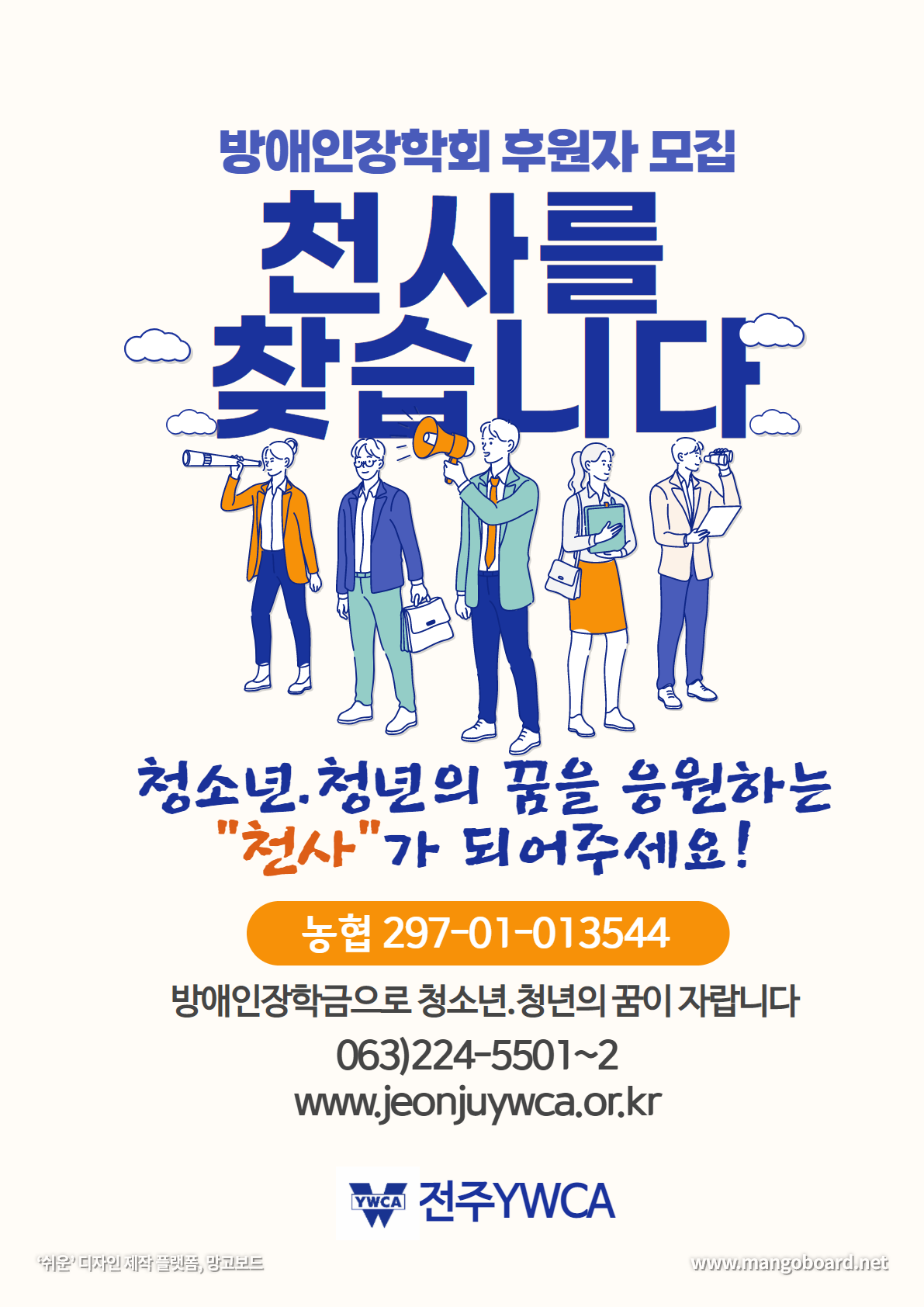 전주YWCA 방애인 장학회 후원"천사"를 모집합니다!
