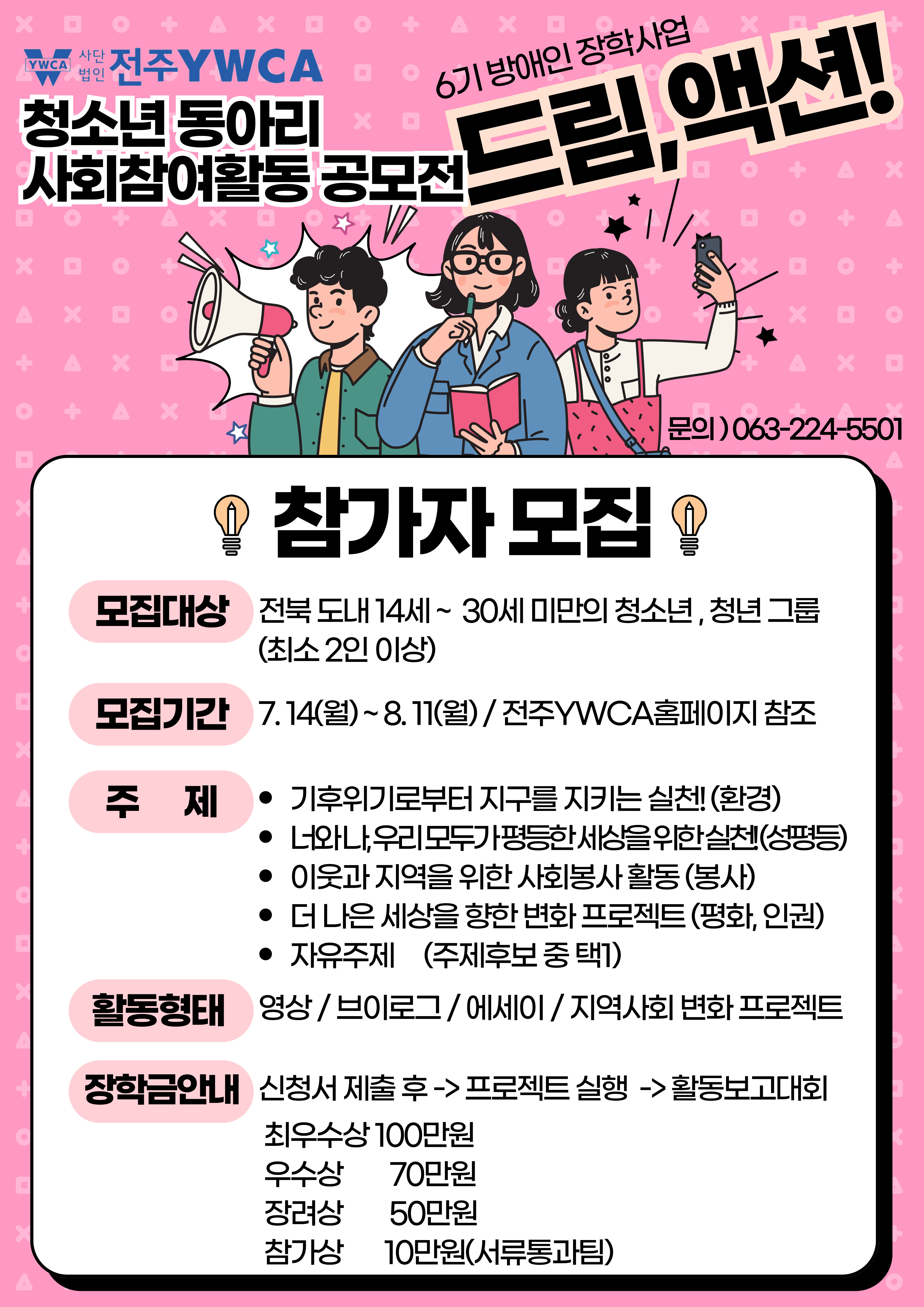 (사)전주YWCA에서는 지역사회 청소년, 청년을 위한 공모전을 개최하고 아래와 같이 모집합니다.