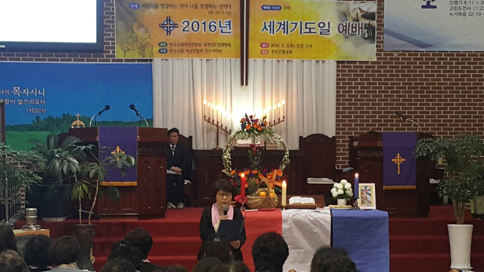 2016년 세계기도일 예배는 3월 3일(목) 오전 11시 전주신광교회에서 진행하였다.