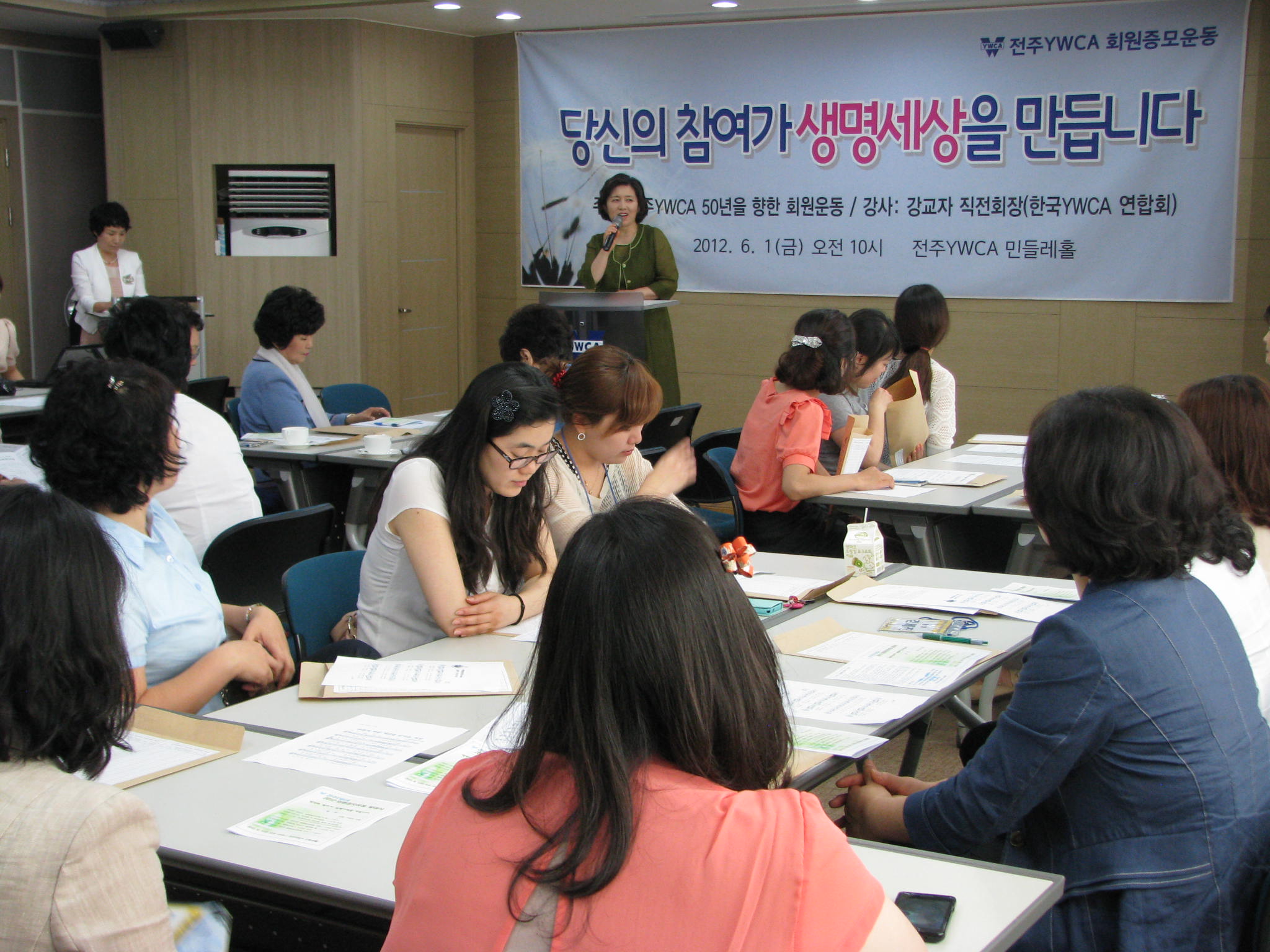 2012 회원증모운동은 “당신의 참여가 생명세상을 만듭니다.”는 주제로 전주YWCA 50년을 향한 회원운동으로 전개되며, YWCA 회원의 중요성에 대한 인식 강화를 통해 회원운동체로서의 정체성을 확립하고자 한다.