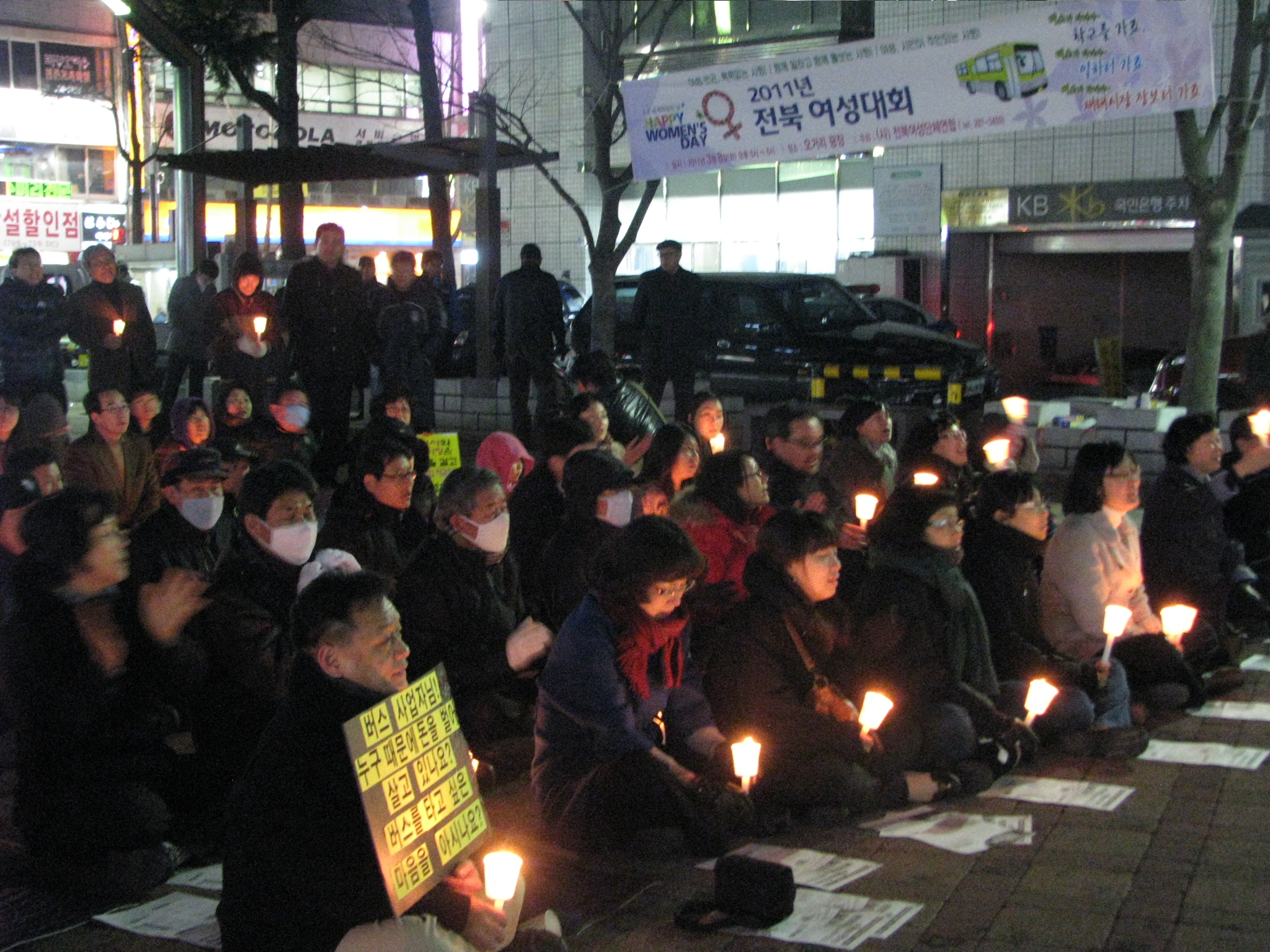 YWCA활동 전주 버스파업 해결 촉구 촛불문화제 2011.3.4 작성자관리자 등록일11-03-07 14:21 조회수744 연합뉴스 2011. 3. 4 전주MBC 2011. 3.4 촛불문화제 (11:14~) 본문 관련링크 http://news.naver.com/main/read.nhn?mode=LPOD&mid=tvh&oid=001&aid=0004… 3677회 연결 http://www.jmbc.co.kr/2008/news/vod/vod.php?news_link=20110304006400**… 325회 연결 목록 다음글 포크기타교실 문을열다 11.03.09 이전글 2011년 세계기도일 예배 11.03.03 댓글 (1) 댓글목록 관리자님의 댓글 관리자 작성일 11-03-07 14:29 링크된 주소를 확인하세요~ 전주YWCA함께 합니다!!!! 링크된 주소를 확인하세요~ 전주YWCA함께 합니다!!!! 댓글 옵션