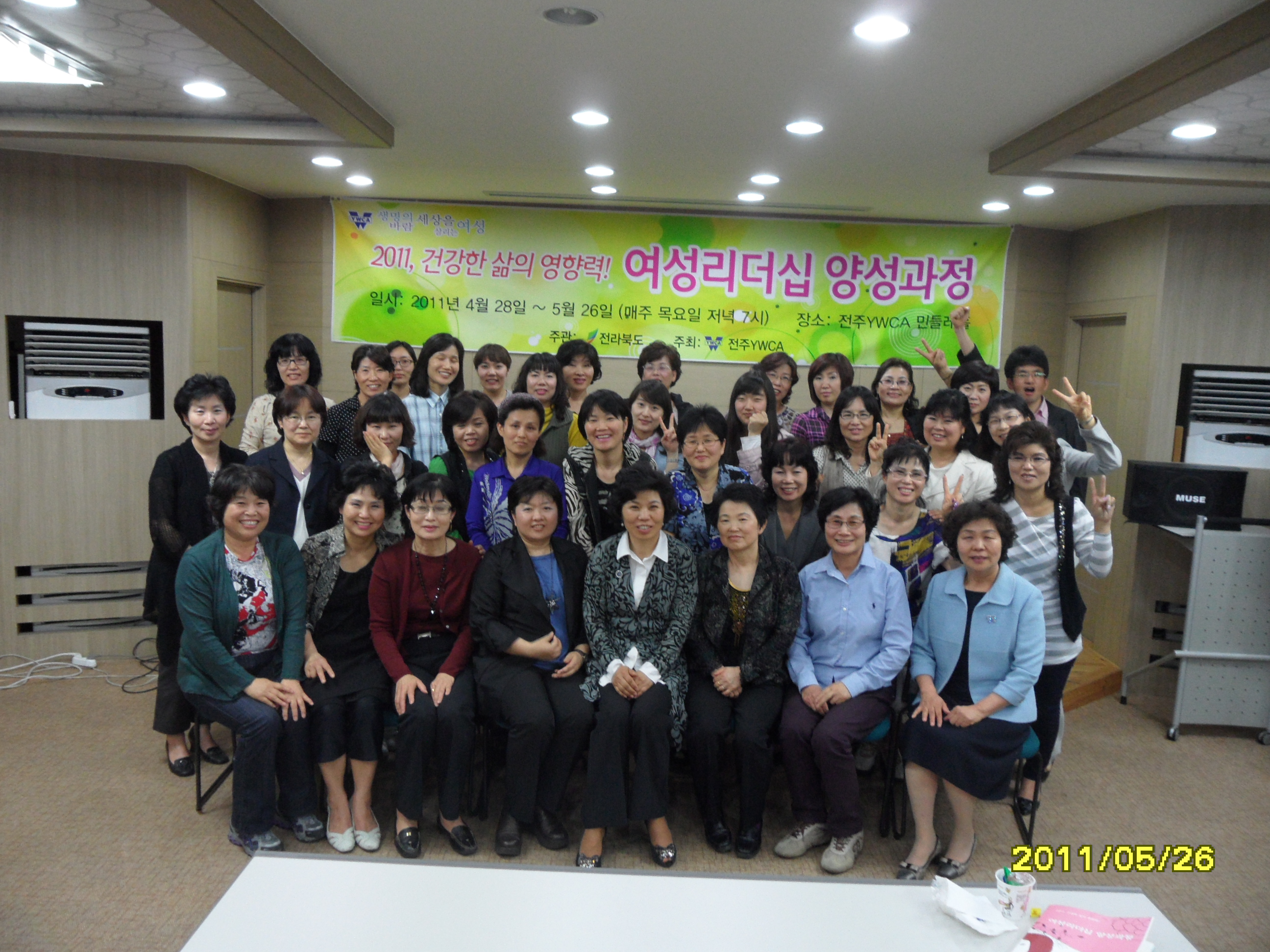 전주YWCA 3층 민들레홀에서 4월 28일~5월 26일까지 “2011 건강한 삶의 영향력” 주제로 총 5회기 여성리더십 양성과정을 진행하고 63명이 참석한 가운데 총 50명이 수료하였다.
